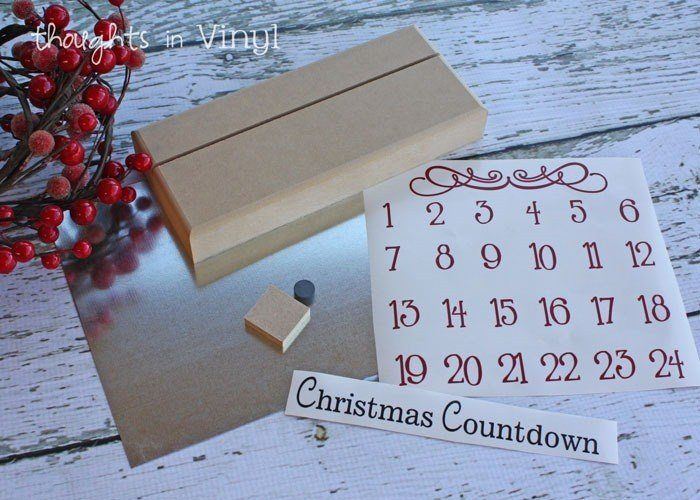 This fun Christmas countdown will be a fun way for your kids to keep track of how many more days until Santa comes. The metal is galvanized so it won't rust over time. Spray paint the metal a fun, festive color and then add the vinyl #'s. Paint or modpodge some paper onto the wooden base and apply the vinyl, and you are set!