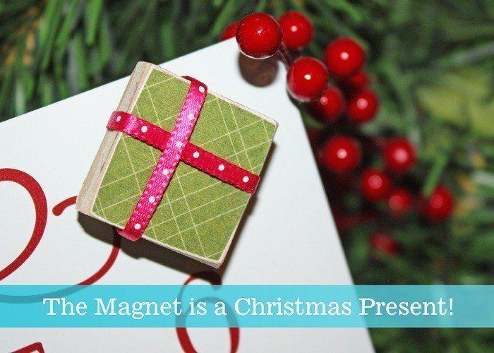 Simply tie some ribbon around the wooden block to make it look like a Christmas present.