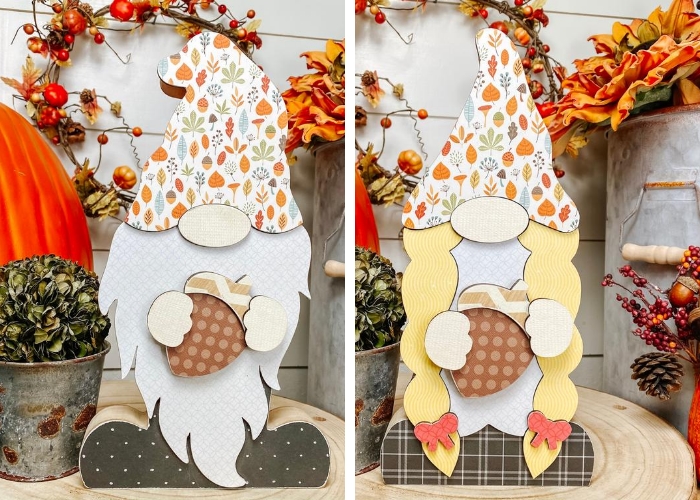 This craft comes unfinished. You can easily paint these pieces or modpodge with scrapbook paper.