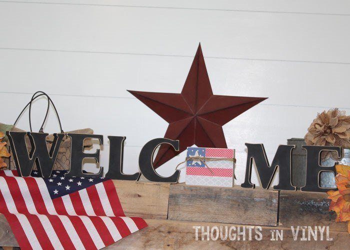 Overall size of WELCOME (with the shape) is roughly 5 1/2" tall x 35" wide. The letters are 1 1/8" thick so they won't tip over.