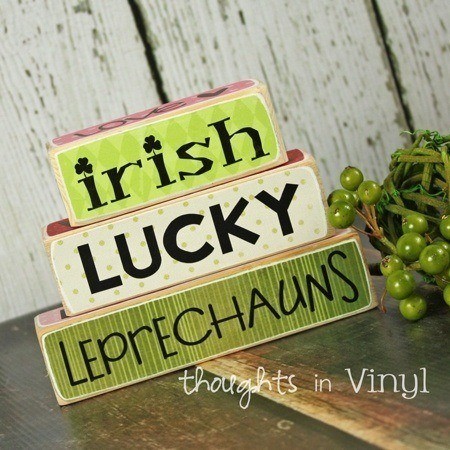 This fun craft kit can be rotated to feature four layouts. Simply paint or decorate the wooden blocks with scrapbook paper and apply the vinyl lettering. Rotate the blocks a quarter of a turn for each different holiday.