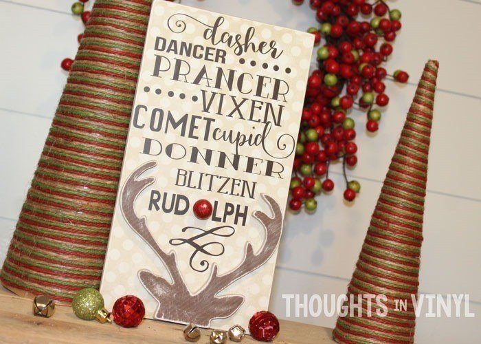 You will be able to finish this craft with your own personality! Paint or modpodge the wooden board and then apply the vinyl lettering. After the lettering is in place, you can glue the Rudolph nose and antlers in place. We added red glitter to our wooden nose before we glued it in place for a fun touch! You can embellish how ever you wish :)