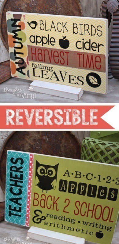- brick red vinyl "Harvest Time" and "Back 2 School"