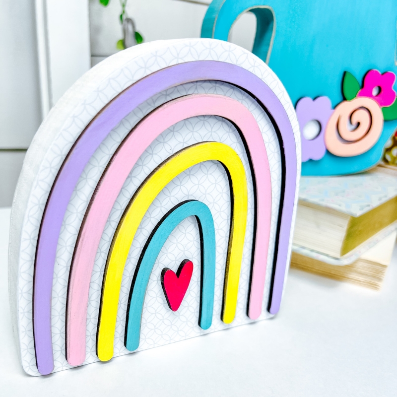 - *This kit includes paper for ONLY the bird, wing, belly, and solid rainbow cutout. The watering can, flowers, leaves, rainbow arches and heart were all painted. Due to the intricate details of those pieces, we found it easiest to paint those pieces.