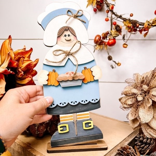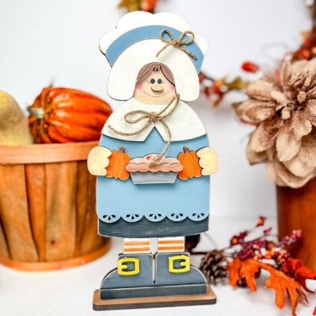 - Girl Pilgrim is roughly 4.5" wide x 10.8" tall