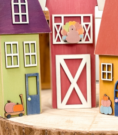 These crafts comes unfinished. You can paint each piece or modpodge with scrapbook paper.