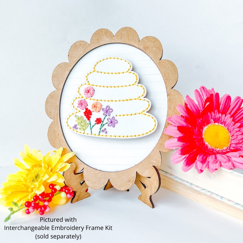 - Velcro Kit (this is needed to use your embroidery shape with the Interchangeable Frame). The Velcro Kit includes wooden piece and Velcro to make your shape compatible with the Interchangeable Frame.