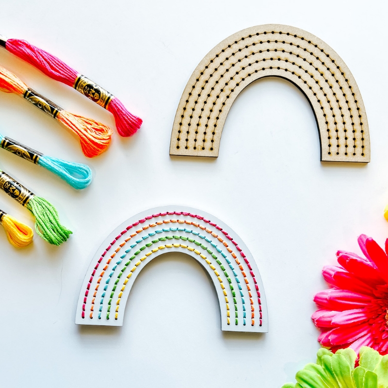 Wood Embroidery Rainbow