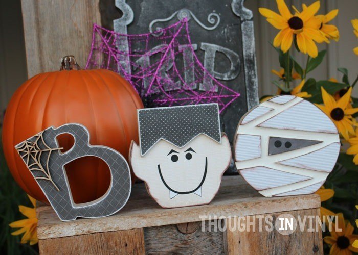 Overall size of the word BOO is about 5 1/2" tall x 16 1/2" wide. The shapes are 1 1/8" thick so they won't tip over.