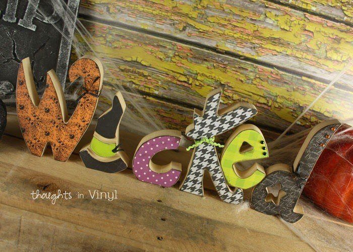 Paint the letters or modpodge them with some colorful scrapbook paper. So much fun and so adorable! The little witch hat is such fun touch to this Halloween letter set.